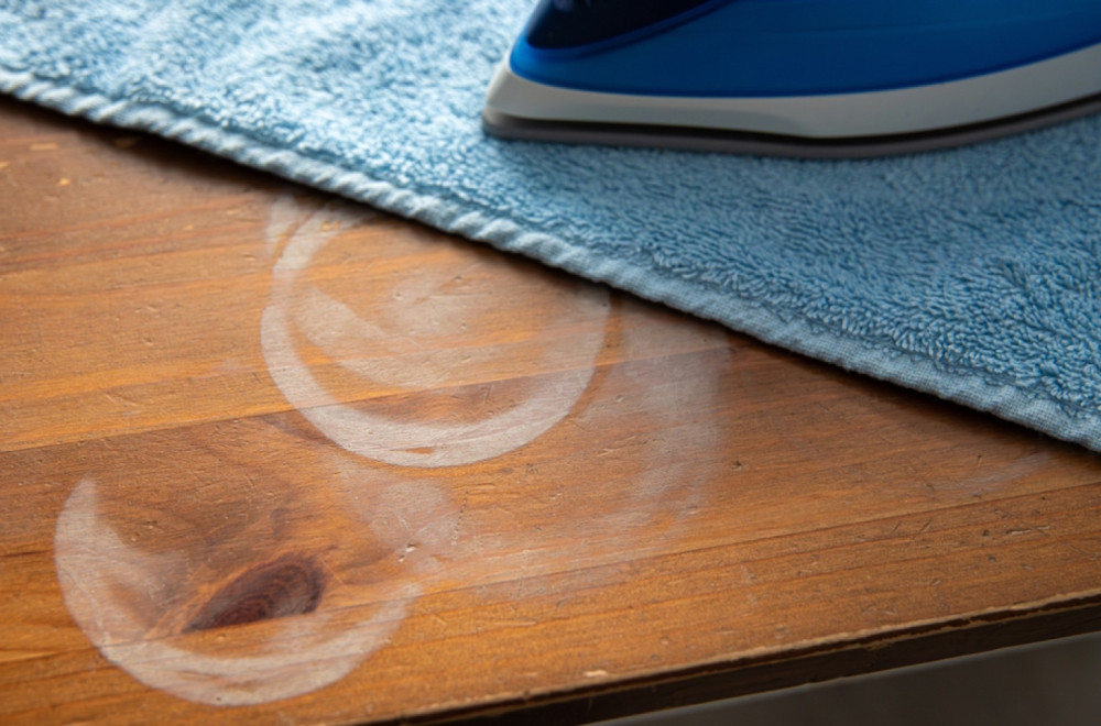 Za one koji vole da koriste kućne aparate – pegla za veš može biti od velike pomoći. Prekrijte fleku pamučnom krpom i lagano prelazite ugrejanom peglom (na niskoj temperaturi) preko tkanine nekoliko sekundi. Toplota će pomoći da vlaga ispari iz drveta, a nakon toga se površina može dodatno ispolirati uljem.