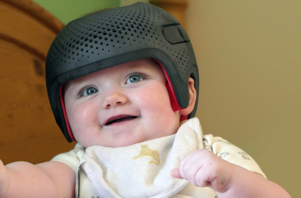 Reč je o deformitetu lobanje, odnosno, jedna strana bebine glave se spljošti zbog neprekidnog pritiska. Ovo se obično dešava na zadnjem delu lobanje kada beba leži na leđima duže vreme. Lekari iz tog razloga preporučuju nošenje kacige, kako bi se, dok se još bebina lobanja formira, ispravila ta ravnina.