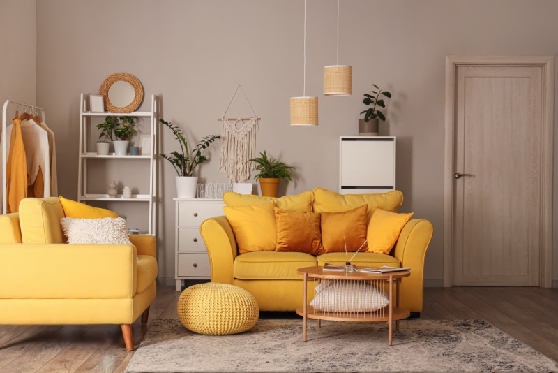 Žuta kao topla boja unosi energiju i optimizam, dok plava svojim hladnijim podtonovima smiruje i usklađuje prostor. U kontekstu psihologije boja, reč je o kombinaciji koja istovremeno deluje i podsticajno i umirujuće, što je čini idealnom za svakodnevne prostore poput dnevne sobe ili kuhinje. Uz to, ova paleta često podseća na prirodne prizore, poput neba i sunca, zbog čega se posebno dobro uklapa u prolećne i letnje enterijere.