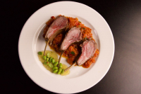 Jagnjetinu prvo propržiti na maslinovom ulju i puteru da uhvati lepu koricu, pa staviti u rernu i peći do 57.5°C.