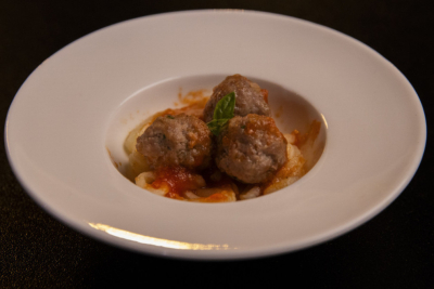 6. Servirati testeninu, sos, pa ćufte i ponovo sos. Na sredinu stavite malo listova bosiljka.