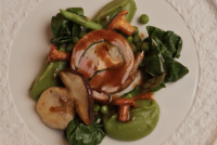 Postaviti jagnjetinu do sebe ređati ramstek, pa blitva od ramsteka do kraja, u tri trake mus izvući, po sredini poređati pečurke i file na kraju, oko celog musa ide blitva. Zarolati jagnjetinu i uvezati, uviti u balotin pa u vakum kesu i pripremljen sous - ide na 64C kuvati na 1h.