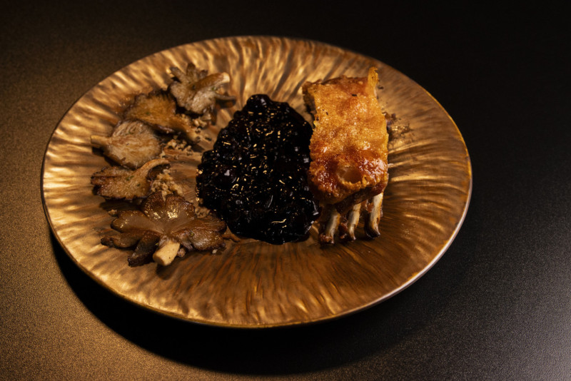 U pitanju je recept za pečena svinjska rebra sa sosom od borovnica i prženim bukovačama na tostiranim orasima.