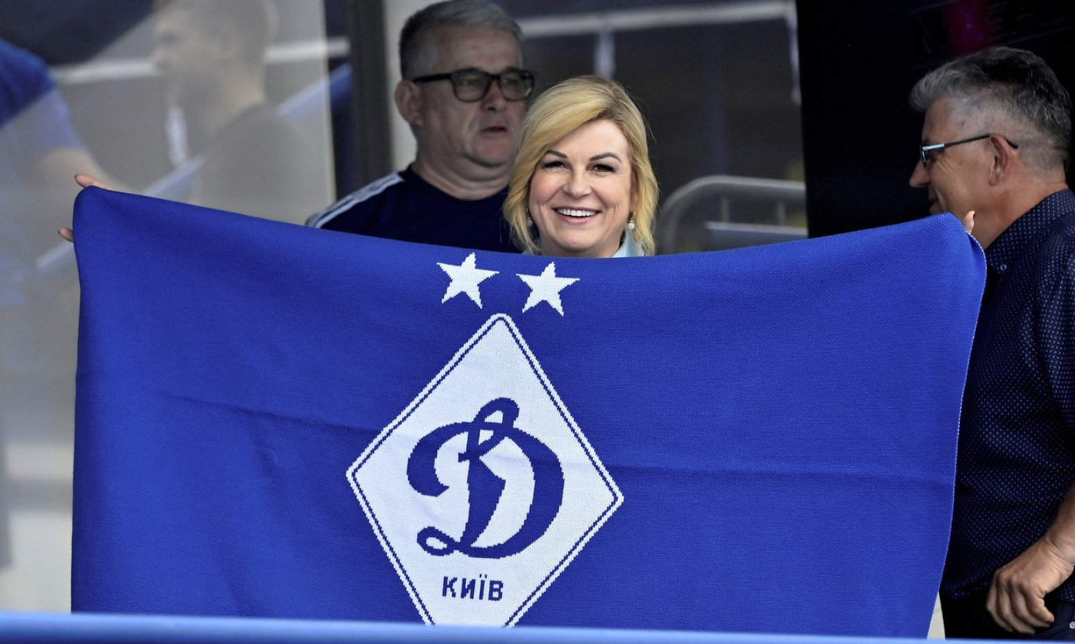 Kolinda se u svečanoj loži pojavila sa zastavom ukrajinskog Dinama, a fotografi su brže-bolje uslikali bivšu hrvatsku predsednicu sa zastavom.