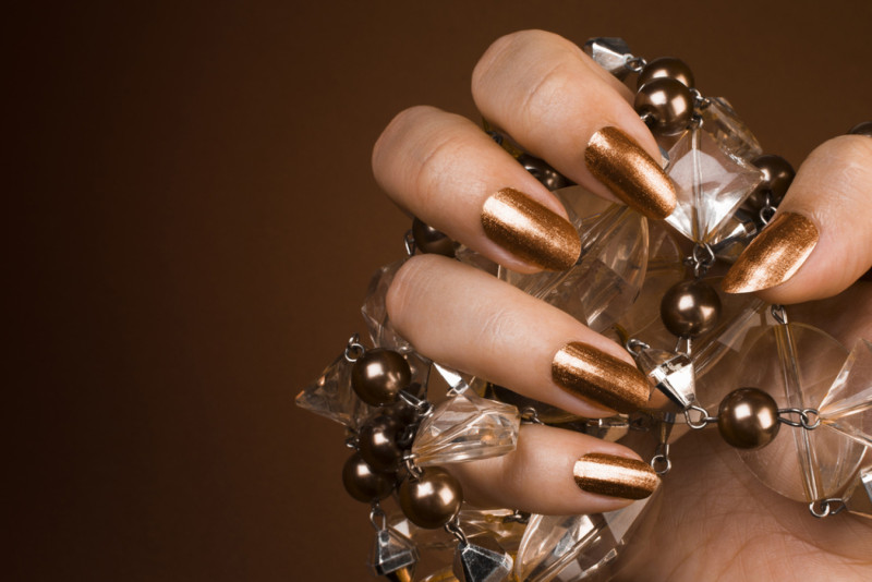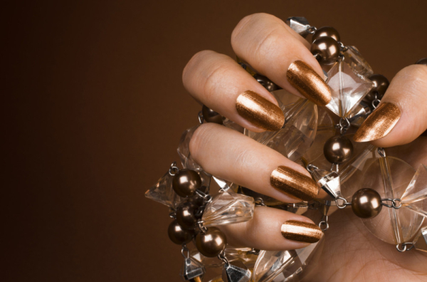 Bronzani manikir lepo spaja starinsku eleganciju i savremeni sjaj: tanak, providan sloj daje uredan your nails but richer utisak, dok punija bronza sa šimerom pretvara nokte u male skulpture.