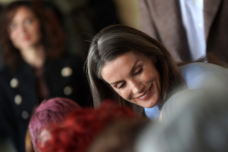 Tako je ovog puta lepa španska kraljica ostala dosledna sebi i prošetala sa sedom kosom. Za posetu školi je odabrala bele pantalone i svetloplavu košulju, dok su sedi pramenovi primetno prošarali njenu crnu kosu.