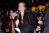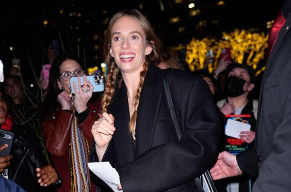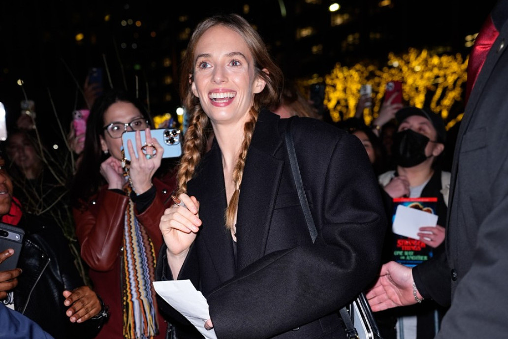 Maja je nosila belu venčanicu uz predimenzionirani, perjani zimski kaput, dok je Hutson ostao veran klasici u smokingu. Još uvek je nepoznato čiji brend je nosila glumica, ali se pretpostavlja da se radi o Pradi, s obzirom na to da je ona ambasadorka ove modne kuće.
