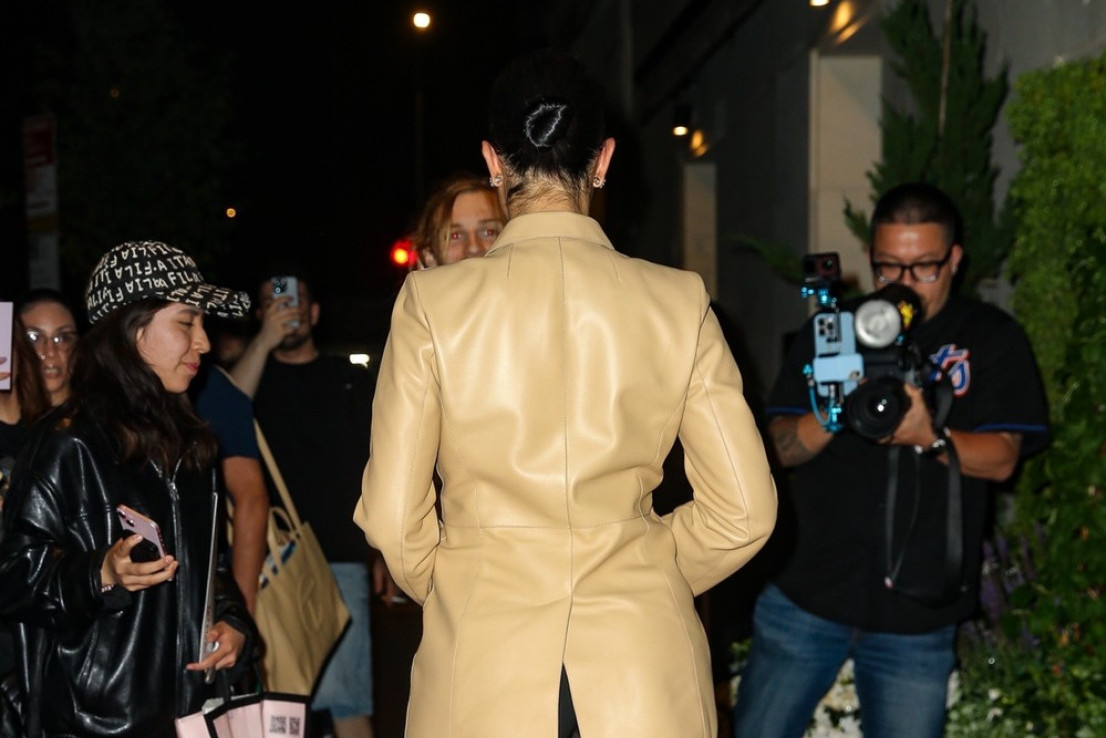 Georgina je prošetala u malo dužem sakou ispod kog je samo imala crni bodi, pa kad se okrenula, moglo se videti dosta toga...