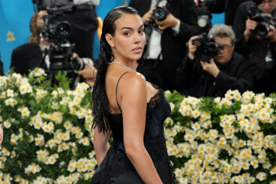 Crna haljina u stilu spavaćice je bila njen odgovor na temu koju je zadala čuvena Ana Vintur, a koja slavi dendi stil, e sad, da li je baš Georgina pogodila ovom kreacijom?