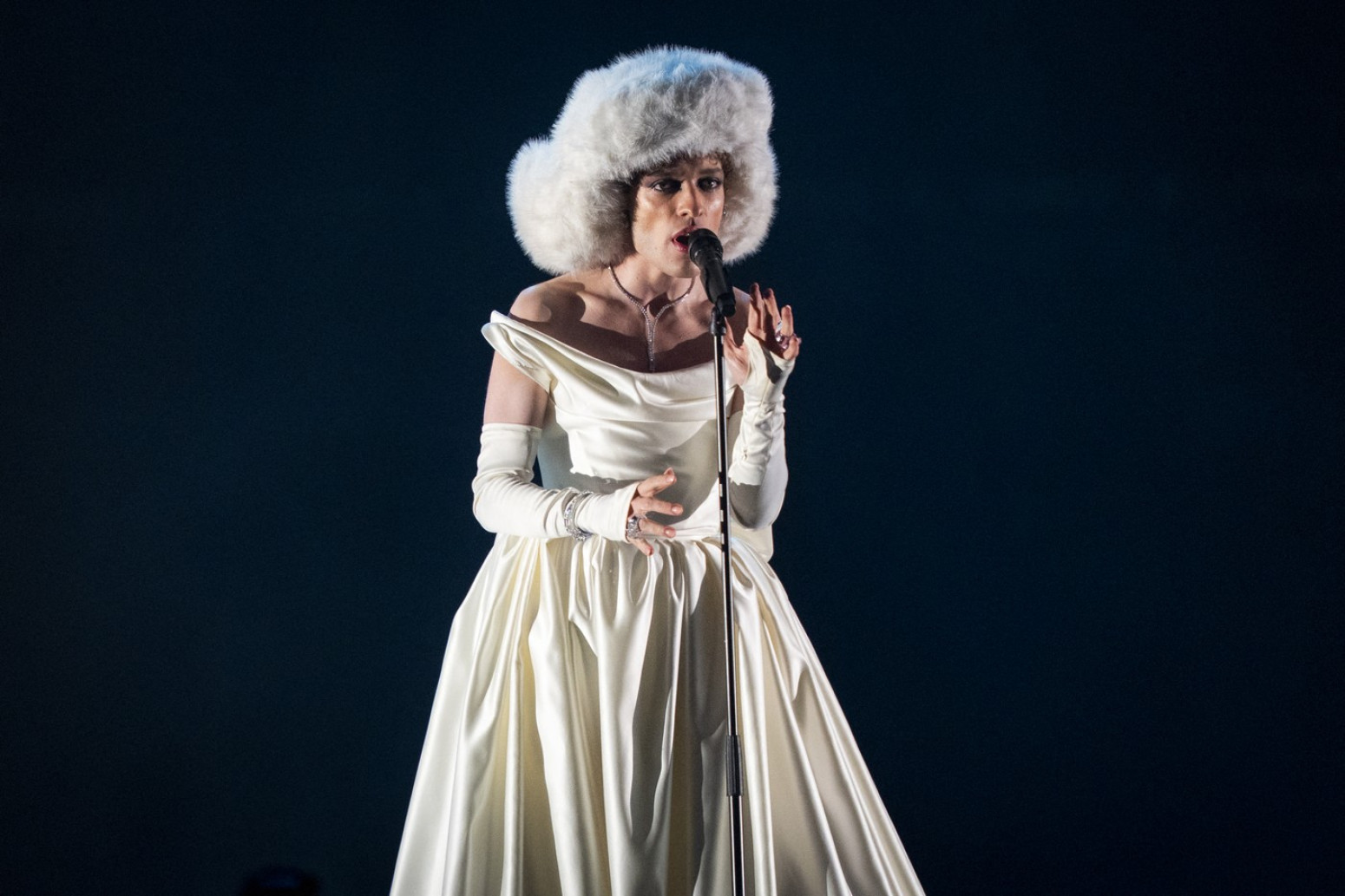 Pesmu "The Code" izveo je u zanimljivoj odevnoj kombinaciji - odnosno, odlučio se za predimenzioniranu haljiu u prljavo beloj boji, koja dosta podseća na venčaniu.