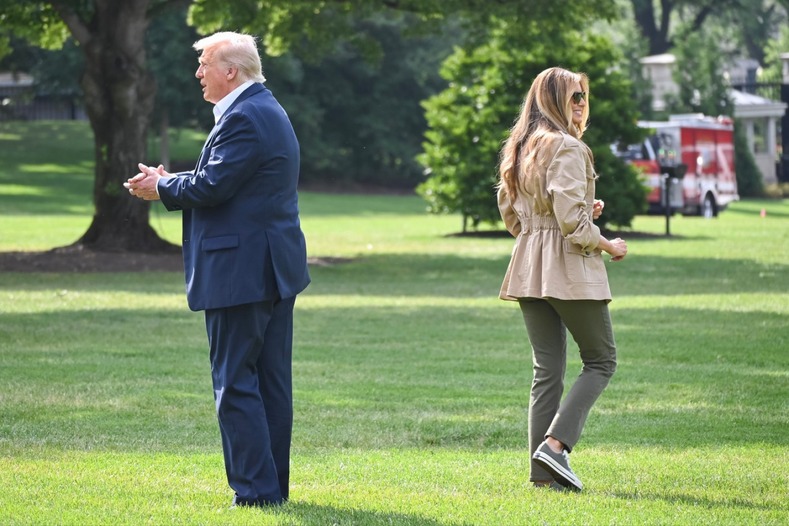 Melanija i Donald su se uputili helikopterom One za Teksas, a fotografi su ih snimili u dvorištu Bele kuće prilikom ulaska u isti.