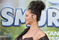 Proslavljena pevačica Rijana povela je svoje sinove Rzu i Riota zajedno sa sobom na premiju Štrumpfova, pa je tako u poodmakloj trudnoći odmah postala glavna tema zajedno sa mališanima.