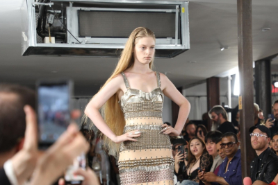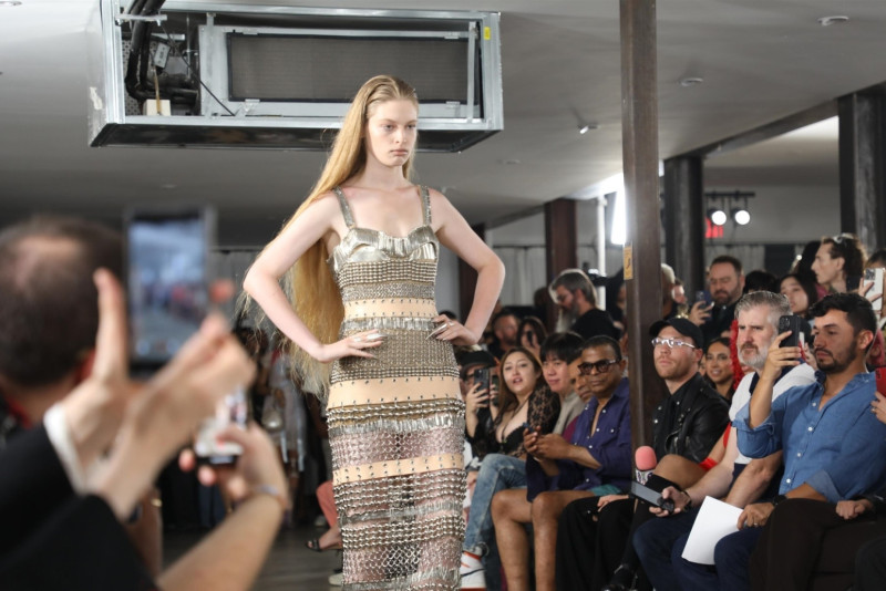 Ona je nosila "metalnu" haljinu sačinjenu od niza zihernadli i lančića, po čemu se i izdvojila ovog puta. Okupljene je oduševila i jer nije imala šminku, već je samo pustila svoju dugu plavu kosu i sa puno samopouzdanja prošetala pistom.