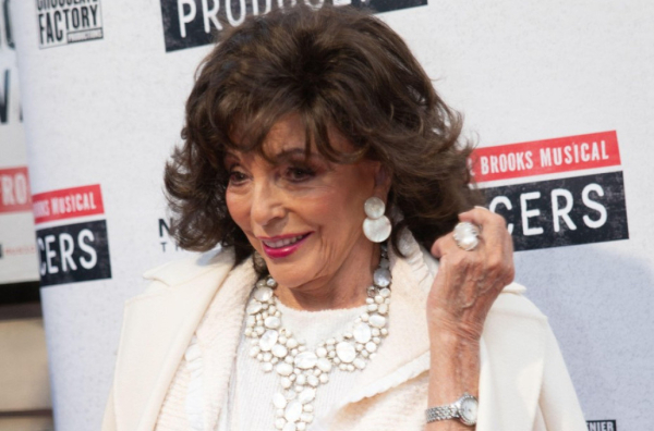 Glumica Džoan Kolins nedavno je posetila "London's Garrick " pozorište, gde je prihvatila ulogu u Mel Bruksovom mjuziklu "The Producers". Crvenim tepihom prošetala je u beloj kreaciji - od glave do pete - koja je dodatno istakla njenu auru dive.