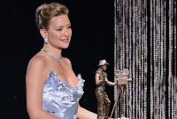 Kejt je s velikim osmehom primila nagradu "Pioneer of the Year" u Los Anđelesu, a za tu priliku je odlučila da ponese toaletu u nežno plavoj boji koju potpisuje čuveni dizajner Oskar de la Renta.
