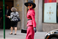 Stajlingu je dodala predimenzionirani crni šešir, visoke potpetice i crne rukavice koje su samo upotpunile stil prave dame.