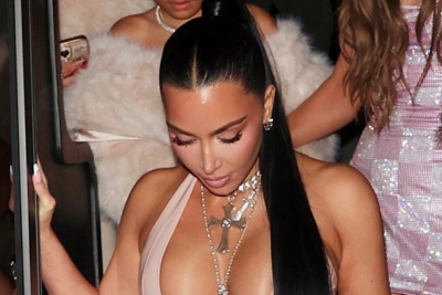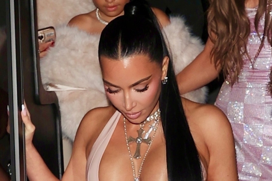 Kim je sve upotpunila vrtoglavo visokim platformama, dok je kosu zalizala i pokupila u rep. Svom raskošnom dekolteu je dodala efektne ogrlice i u potpunosti bila fokusirana na sebe.