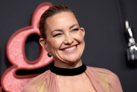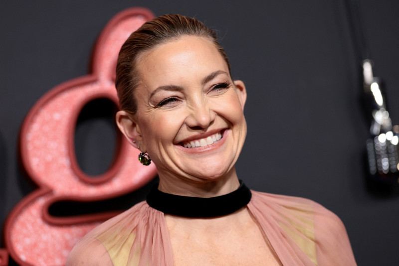 Lepa Kejt Hadson je primetno promenila i frizuru, te plavu kosu skratila do ramena i uz jednostavan razdeljak na sredini i uvijene krajeve ka unutra, te minimalističkom šminkom, zračila je prirodnom lepotom.