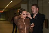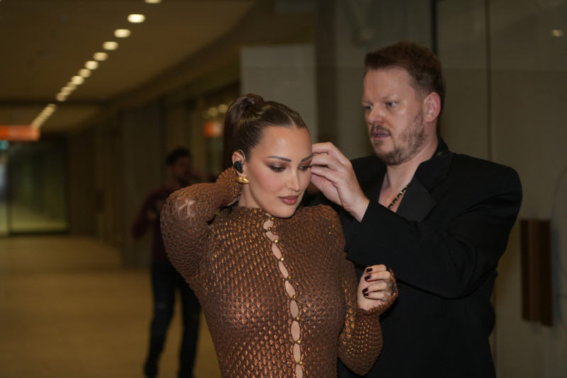 Krasi je bronzano-zlatna tekstura i kroj koji prati liniju tela i ističe vitku figuru. Taj balans između svedenosti i upečatljivog dizajna daje utisak tihog luksuza. Ne bi trebalo izostaviti ni decentni dekolte koji je samo malo "začinio" ovo izdanje.