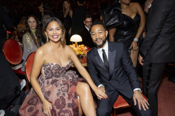 Društvo na crvenom tepihu joj je pravio muž, legendarni pevač Džon Ledžend koji je nosio klasično odelo.
