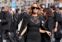 Elegantna Francuskinja se pojavila u pripijenoj haljini sa čipkastim detaljima na grudima, koju je uklopila uz elegantni crni kaput i visoke potpetice.