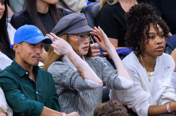 Vini Harlou sedela je u prvom redu i pratila košarkašku utakmicu Los Anđeles Klipersa protiv Milvoki Baksa, iako njen verenik nije igrao u tom trenutku.