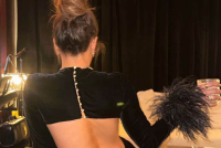 Kako se vidi, reč je o kreaciji koja prati liniju tela i naglašava sve njene obline. Ne bi trebalo izostaviti ni otvorena leđa koja su bila upečatljivi deo kreacije, ali ni perjane rukave koji su celokupnom stajlingu dali jednu seksi notu.