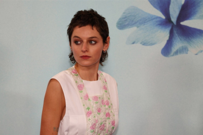 Svoju verziju ovog izgleda na crvenom tepihu je pokazala i Ema Korin. Odabrala je cvetnu kecelju s volanima koju je nosila preko obične bele majice. Stajlingu je dodala sive pantalone klasičnog kroja.