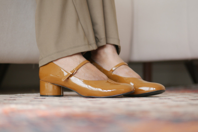 Sjajna, lakovana završna obrada potpuno menja utisak ovog klasičnog modela, a niska blok peta pruža udobnost dovoljnu za celodnevne obaveze po gradu. Iako je kombinacija s crnom odećom siguran izbor, ove cipele deluju neočekivano i sveže kada se nose uz svilenu slip suknju ili u kontrastu s plavim džinsom. Reč je o cipeli koja ostavlja snažan utisak uz minimalno ukrasa.
