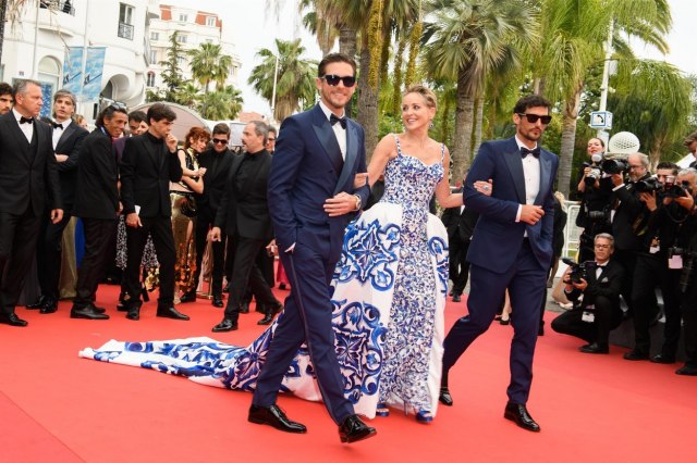 Pošto je njena kreacija za Kan podrazumevala haljinu i šlep, glumica je odlučila da je u jednom trenutku oslobodi "svih okova", tako da ostane samo onaj primarni deo - bela haljina sa plavim detaljima. Tako je uz pomoć dva lepotana, koja su je pratila tokom celog festivala, skinula šlep, a svi prisutni su ostali nemi pred njenim performansom.