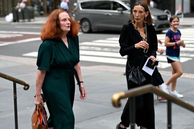 Legendarna kreativna urednica američkog Voga izabrala je tamno zelenu haljinu na preklop, zaštitni znak mode osamdesetih.