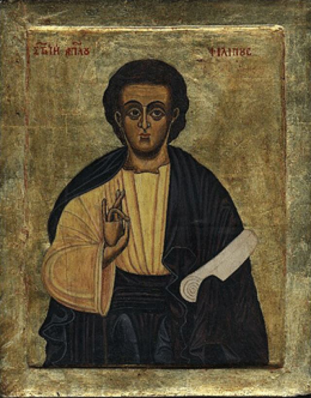Sveti apostol Filip rodom je iz Vitsaide kraj jezera Galilejskog. Revnosno je propovedao Jevanđelje u Aziji i u Grčkoj, u kojoj su Jevreji hteli da ga ubiju, ali ga je Bog spasao moćnim čudesima. Tako arhijerej jevrejski, koji se ustremi na Filipa da ga bije, odjednom oslepe i sav pocrni.