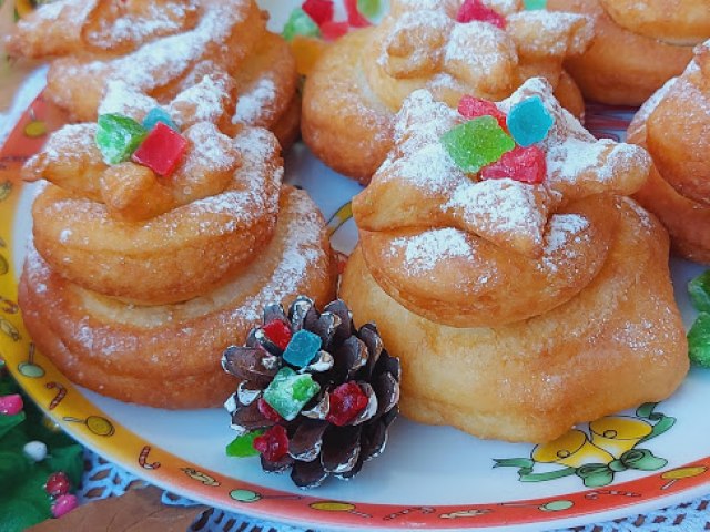 Pržite u dubokom ulju. U sredinu stavite ušećerene bombone ili kockice žele bombona.