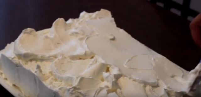 6. Umutiti 200 g šlaga i 200 ml hladne kisele vode. Dekorisati poslasticu po želji.