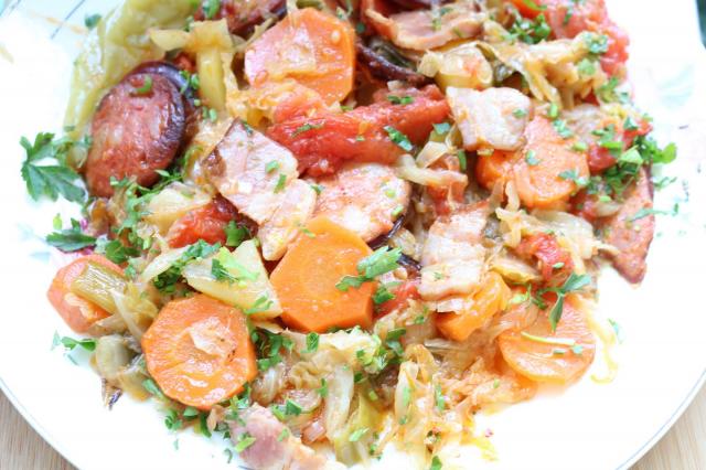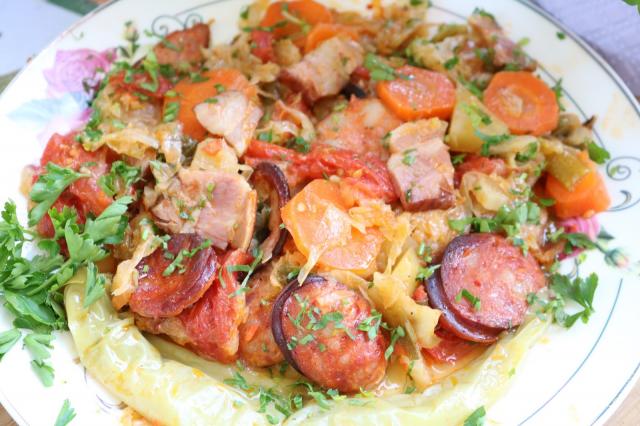 Svi oni i koji nisu ljubitelji slatkog kupusa ovoga puta će biti oduševljeni i u slast će ga pojesti. Kako i ne bi kad mu je dodato raznovrsno povrće puno vitamina pa još dimljena suva slanina i kobaja koje ovo jelo čini vrhunsko..