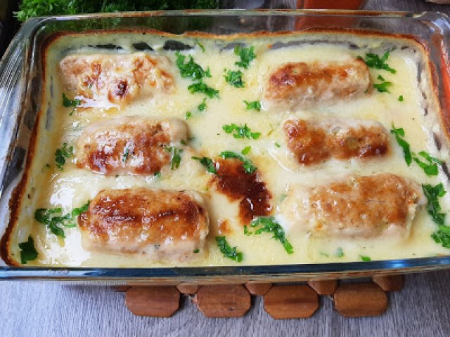 U šerpicu staviti ulje, dodati brašno i seckan beli luk i sve lepo propržiti. Dodati mleko, po želji se može dodati 1 kašika kisele pavlake i dolivati vode uz neprestalno mešanje da se sos ne zgrudva. Napraviti ređi sos. Ubaciti malo suvog začina, bibera. U manju tepsiju 25x15cm sipati sos.