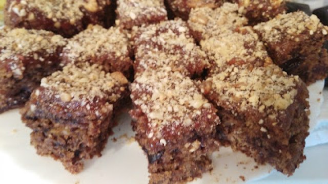 4 kašika pekmmeza od šljiva i sve dobro izjednačiti žicom. Sipati u pleh veličine 26 sm u koji ste stavili peh papir. Peći na 200 stepeni C 40- 45 min. Na polovini pečenja pokriti folijom. Vruć kolač premazati džemom po izboru i posuti mlevenim i seckanim orasima. Seći kad se kolač ohladi..