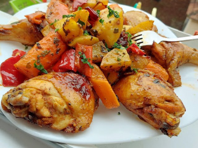 Sve sastojke izmešati pa premazati meso i poređati u kesu. Kao prilog možete u ostatak marinade naseći krompir, šargarepu, crvenu svežu papriku.