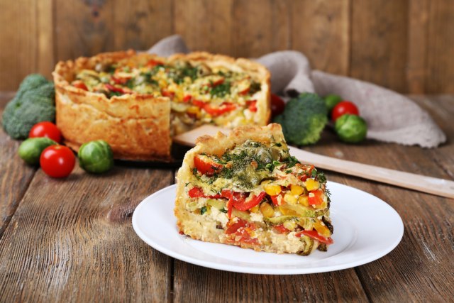 Krompir, paradajz, zelenu papriku i zeleni luk isecite na sitne kockice. Paradajzu skinite kožicu. Zatim, umutite jaja, pa dodajte povrće, so, seckanu fetu, ulje i mleko. Dobro promešajte. Na kraju dodajte brašno i prašak za pecivo.