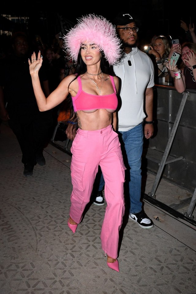 Ova 36-godišnja glumica bila je odevena u roze krpicama od glave do pete, a kako prenosi "Daily Mail", Megan je rekreirala legendarni izgled Pamele Anderson tokom dodele MTV nagrada 1999. godine.