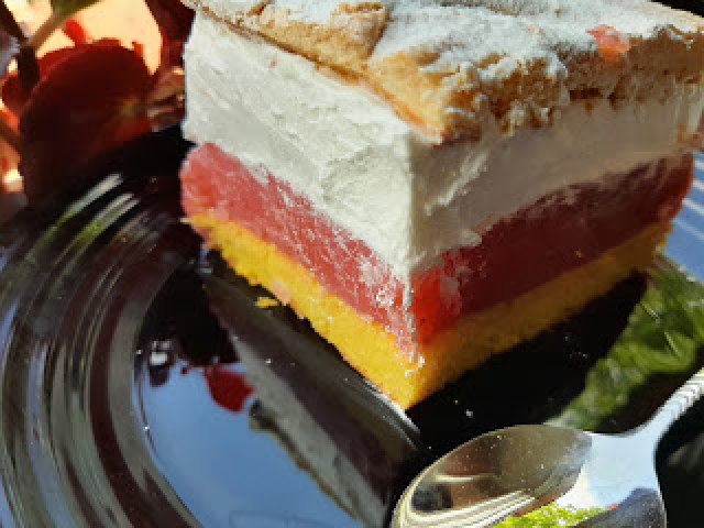 Tepsija treba da bude veličine 30x25. Peći na 180 stepeni C oko 25 minuta. Umutiti belanca sa šećerom, dodati gustin, izjednačiti i peći na 170 stepeni C oko 90 minuta.