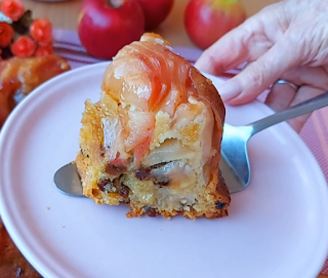 Umutiti jaja sa šećerom, dodati brašno sa grizom i praškom za pecivo, ulje, jogurt, suvo grožđe, koricu limuna. Jabuke dobro oprati, izvaditi seme i iseći na listiće. Silikonski kuglof možete malo premazati uljem, pa na dno staviti jabuke sečene na listiće. Preko dodati testo, pa pola suvog grožđa. Preko testa opet jabuke, pa drugi deo testa u koji umešate ostatak suvog grožđa. Poravnati i peći na 200 C oko 50–60 min. Ostaviti da se kolač potpuno ohladi, pa ga istresti na tanjir. Uživajte u prelepom sočnom kolaču.