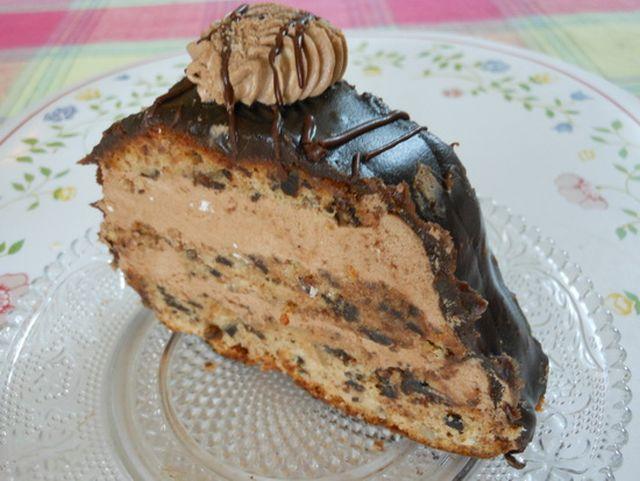 Pečen kolač dobro ohladiti pa izvrnuti iz kalupa. Zatim ga preseći pažljivo na tri dela. Za krem lagano zagrejati sve sastojke da se otope, ali nikako kuvati, ohladiti i dobro umutiti mikserom da postane penasto. U krem pašljivo umešati sitno izlomljenu mlečnu čokoladu. Kremom premazati prvi deo biskvita pa na krem staviti drugi deo i njega premazati kremom. Odozgo prekriti trećim delom biskvita.