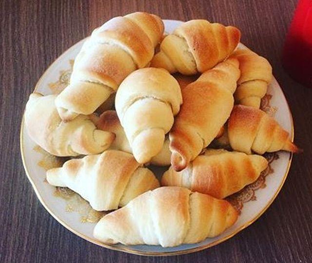 Staviti kvasac u mlako mleko i šećer, da nadođe. Dodati ostale sastojke i umesiti meko testo. Napraviti loptice pa ih razviti, seci u trouglove, pa na širi kraj staviti marmeladu i uviti kiflice. Peći na 200 stepeni oko 20 minuta.