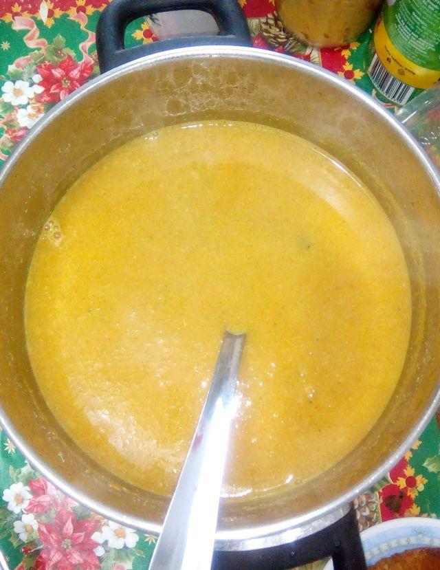 Proprziti jedan luk, na maslinovom ulju, nekih pet minuta.Zatim dodati vodu, šargarepu i bundevu.