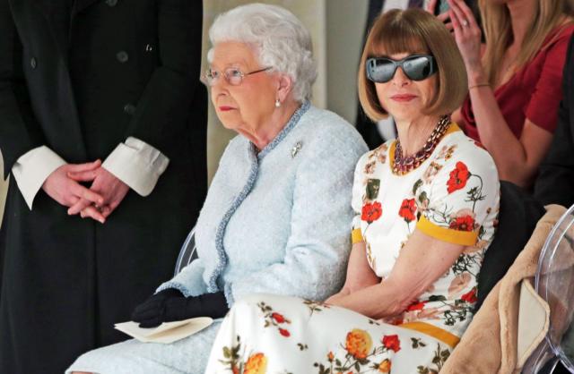 Najmoćnija žena Velike Britanije, kraljica Elizabeta II, i urednica "Voga" Ana Vintur sedela su jedna pored druge u prvom redu na reviji dizajnera Ričarda Kvina.
