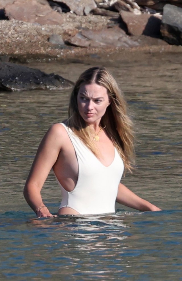 Obožavaoci glumice Margo Robi oduševljeni su njenim prirodnim izgledom nakon što su objavljene fotografije nje i supruga Toma Aklerija kako uživaju na plaži u Grčkoj.