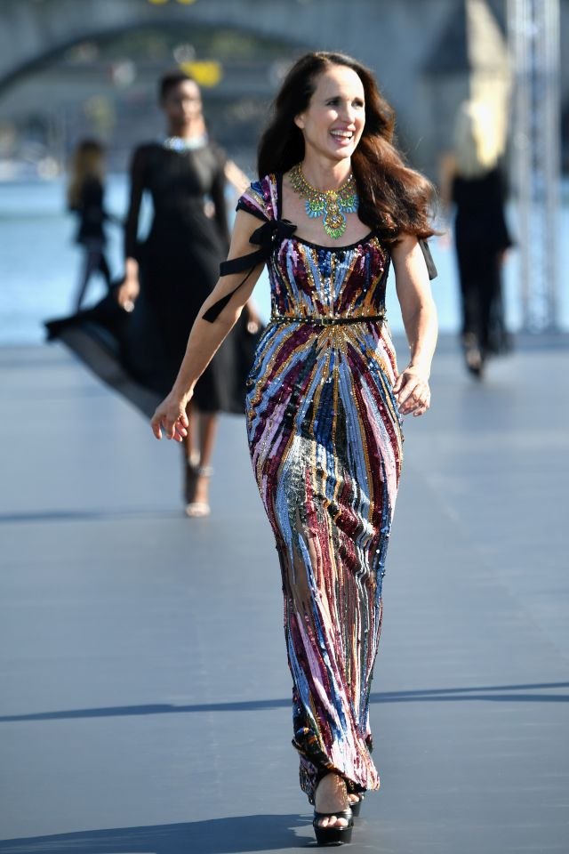Glumica i bivša manekenka Endi Mekdauel vratila se na modnu pistu nakon dugo, dugo godina i oduševila sve koji su se okupili na obali rieke Sene u Parizu povodom revije jednog kozmetičkog brenda.