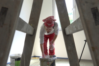 "U suštini, ja sam malo više pošteđena, pa meni daju neke lakše poslove. To je zaštita prostorije, dok oni nose materijale. Moje je isto da pripremim, da razmutim kako treba disperziju za zidove i tako te lakše stvari", priča Danica.