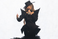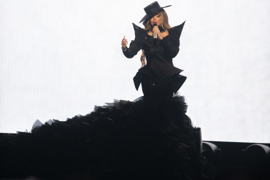 Ona je nastup započela u glamuroznoj i dramatičnoj crnoj haljini sa velikim šeširom, a onda je usledilo najbrže presvlačenje.
